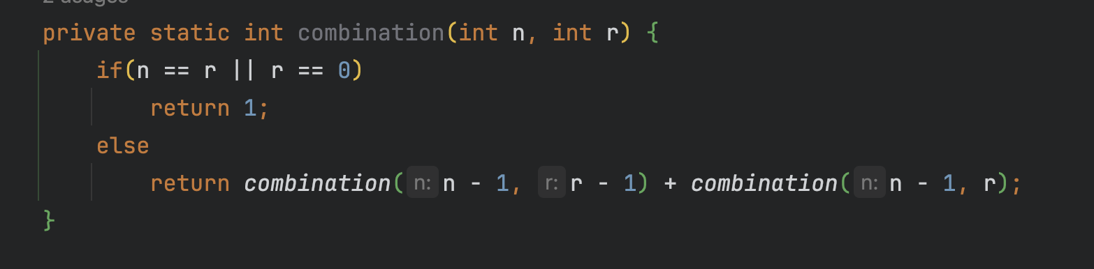 순열 조합 이용해서 마지막에 다 선택된 경우까지 계산되니까 -1 해주면 되겠다