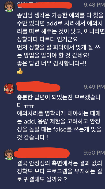 차라리 add로 발생할 수 있는 예외를 다 잡는 게 더 안정적이지 않을까 ?