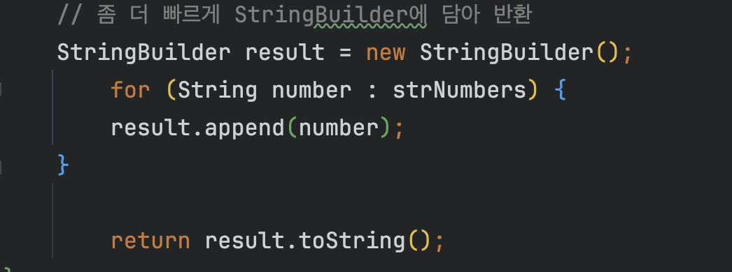// 좀 더 빠르게 StringBuilder에 담아 반환