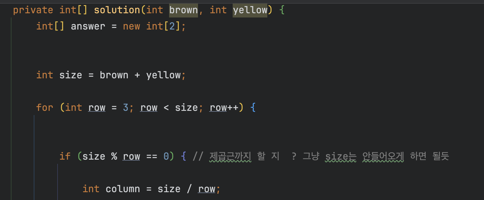 if (size % row == 0) { // 제곱근까지 할 지 ? 그냥 size는 안들어오게 하면 될듯