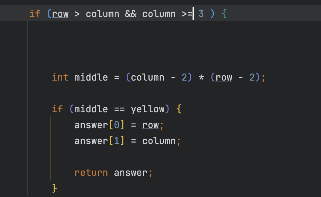 중앙 값으로 오려면 (가로 -2) * (세로 -2)가 yellow랑 동일하다면 저장해주고 return;