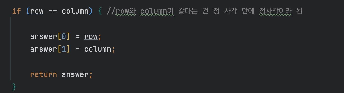 if (row == column) { //row와 column이 같다는 건 정 사각 안에 정사각이라 됨