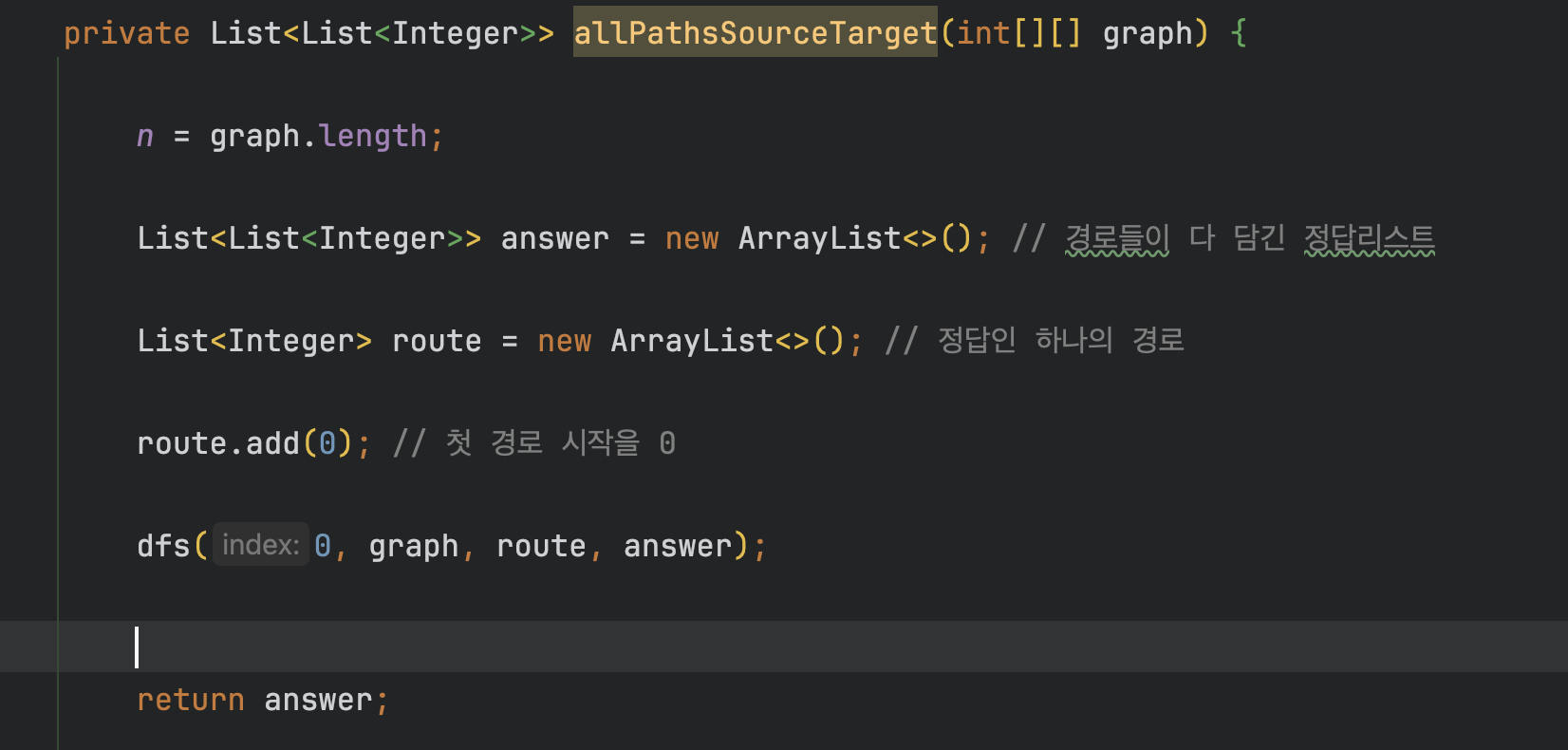 List<List<Integer>> answer = new ArrayList<>(); // 경로들이 다 담긴 정답리스트