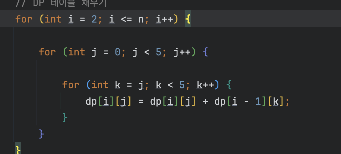 즉 직전 갯수의 경우의 수를 j에게 다 합산해서 더해준다 !
