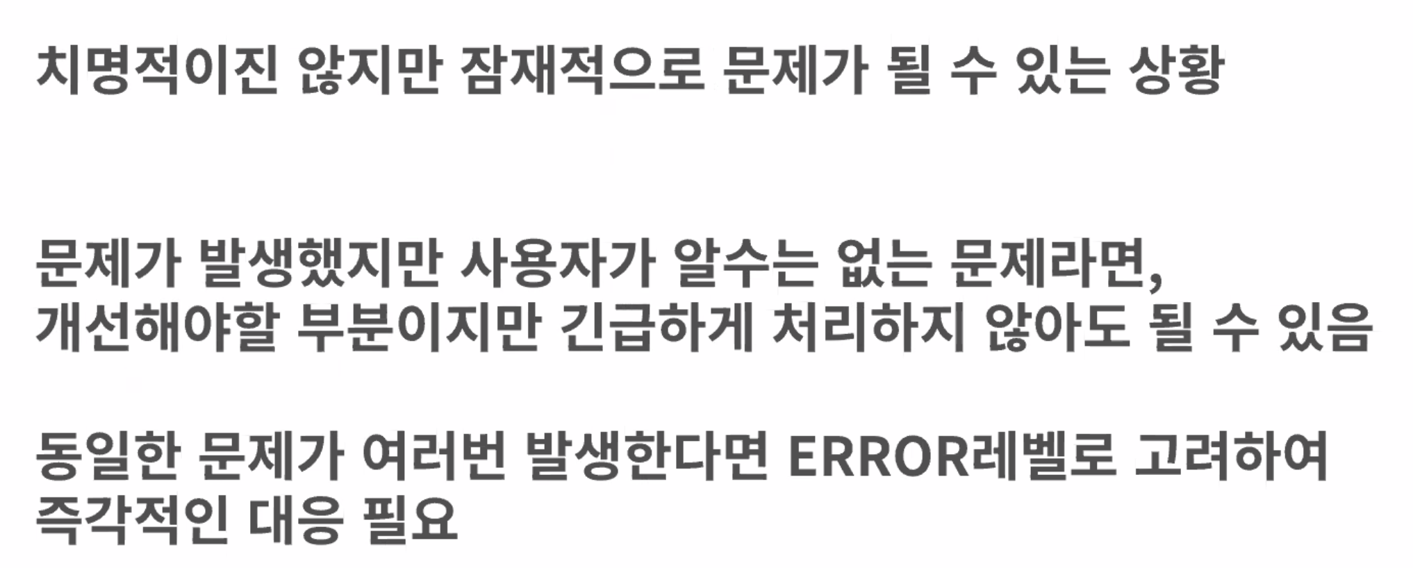 긴급하지 않지만 잠재적으로 ERROR 레벨로 변화할 수 있는 문제들