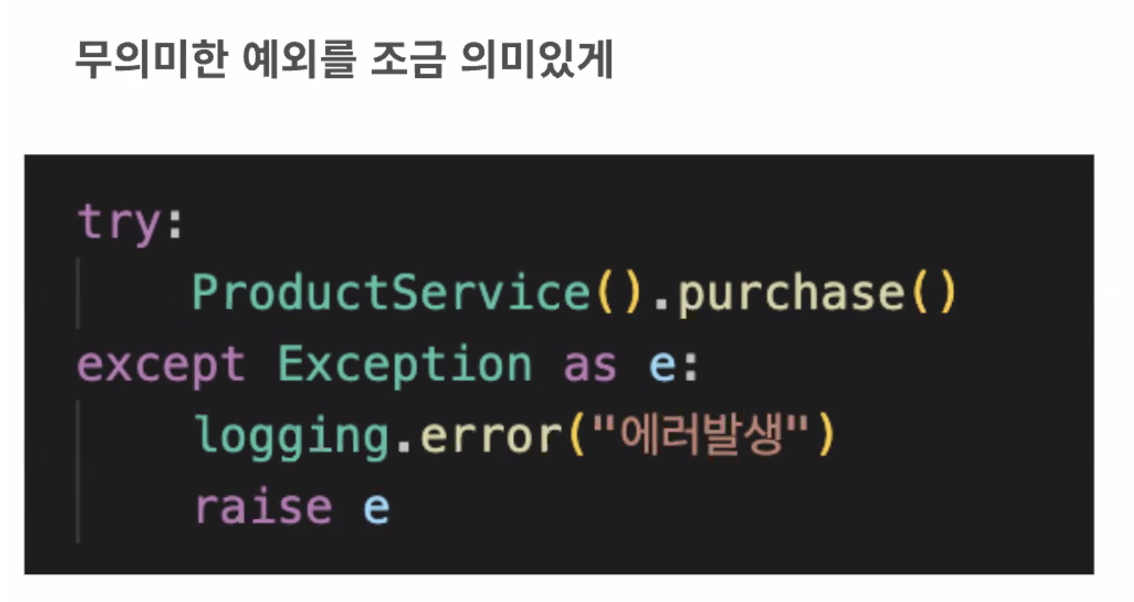에러를 넘기는 상황에서 의미있게 로그를 남기고, 넘겨주는 방식