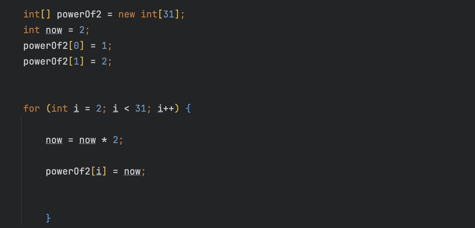 2^30승이 10억쯤 되니 int형 최대치인 31승까지만 그냥 담자