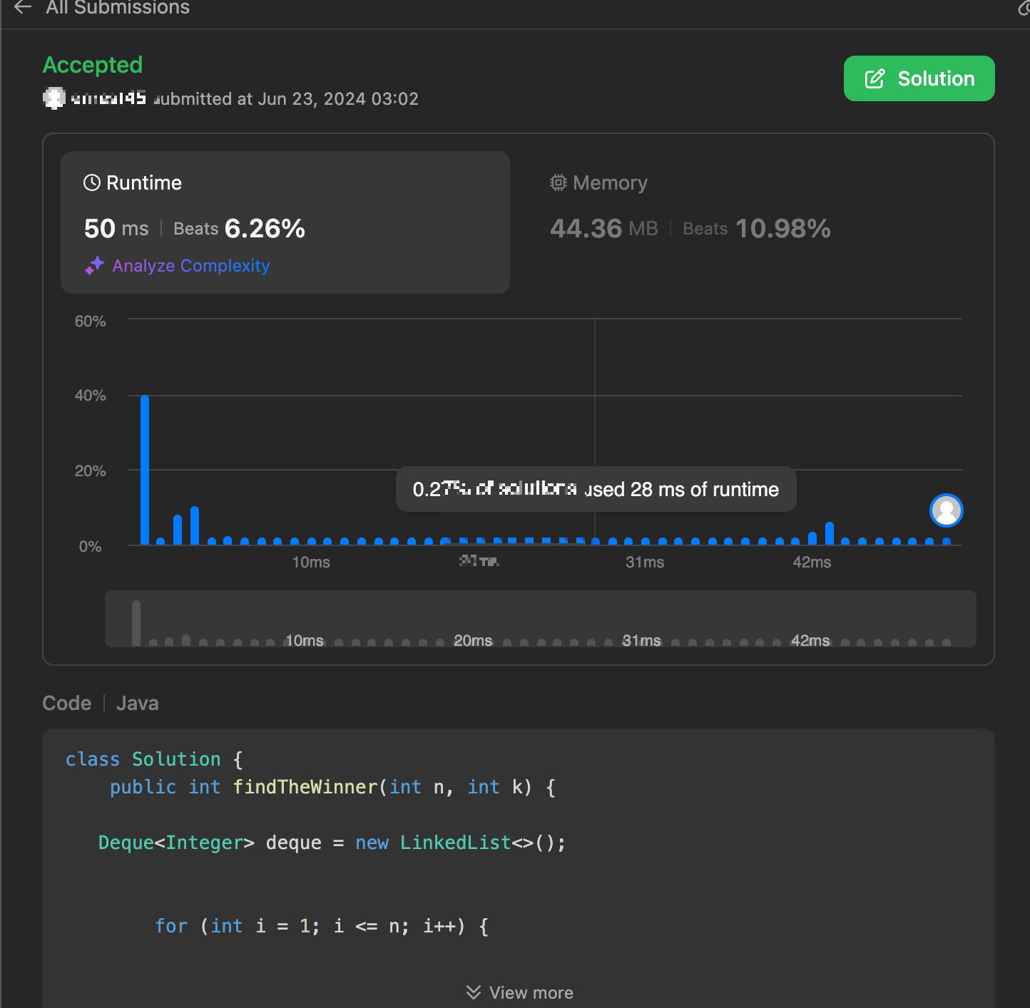 https://leetcode.com/problems/find-the-winner-of-the-circular-game/submissions/1296968550/