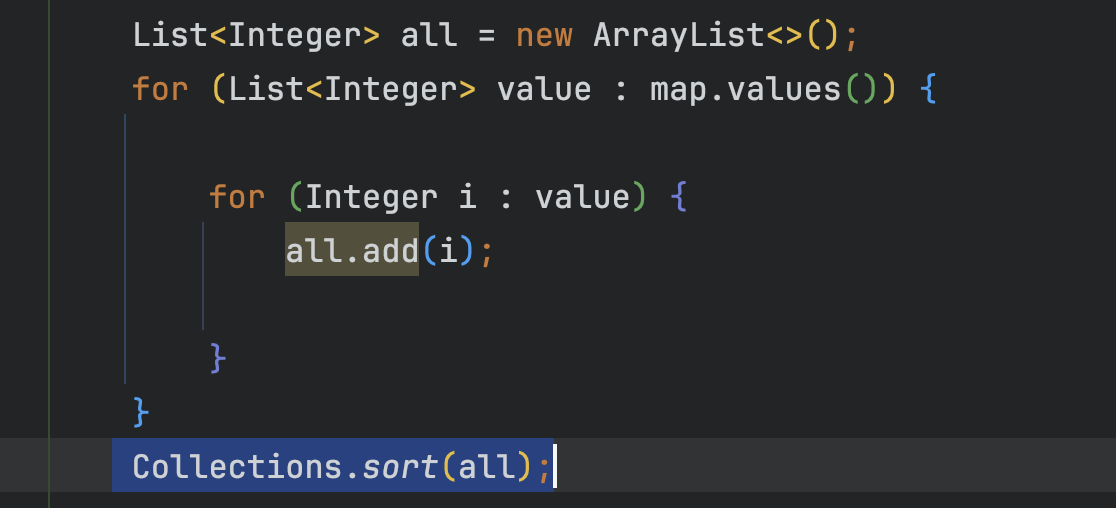map을 돌면서 value의 값들을 all에 추가 후 정렬한다.
