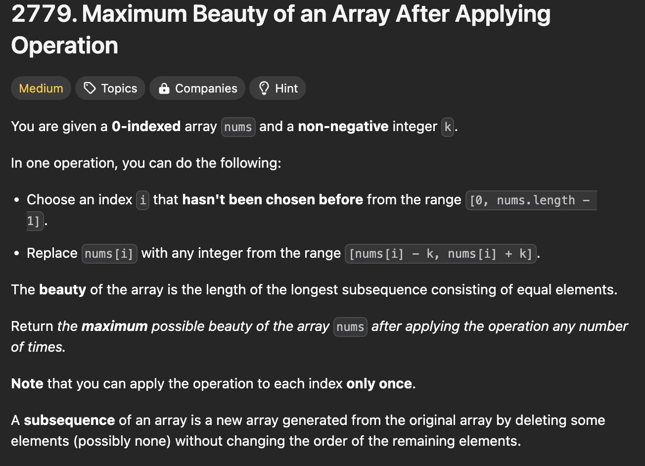 - 0 <= nums[i], k <= 105