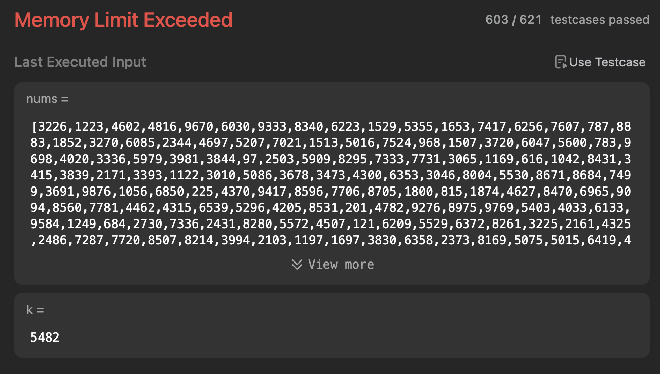 따라서 입력 크기가 10510^5일 때, O(n⋅k)O(n \cdot k)와 O(mlogm)O(m \log m)는 실행 시간 초과를 초래할 수 있습니다.