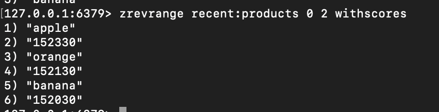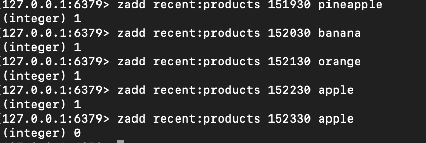 최근 목록으로 뽑아보니, 시간 순으로 나중에 들어간 것이 확인 가능(apple도 중복제거 됨을 확인)