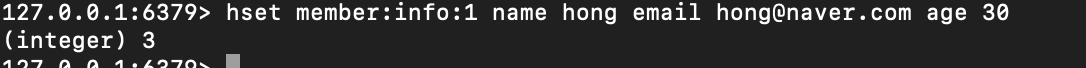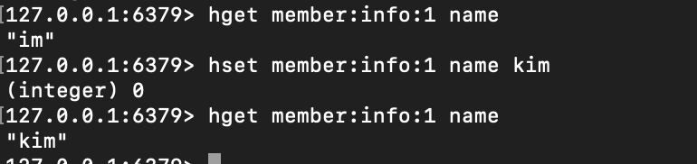 hset으로 기존처럼 덮어쓰고, 다시 조회했을 때 name이 바뀐 것을 확인