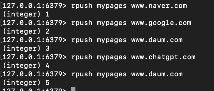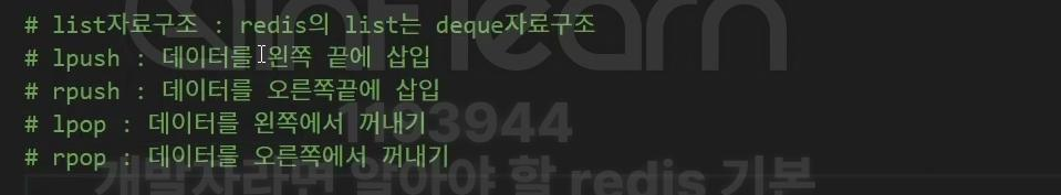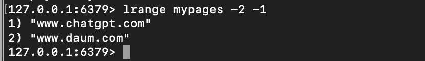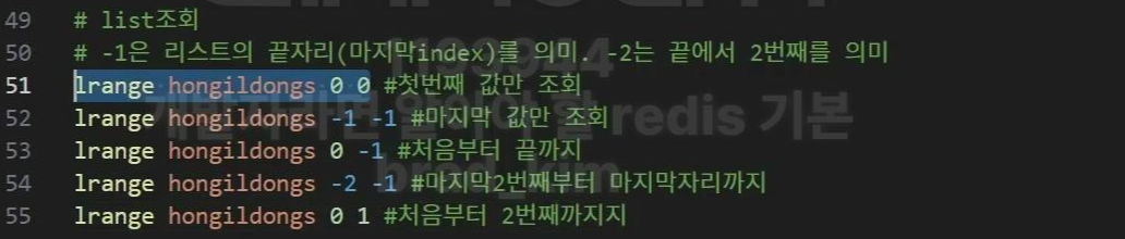 "lrange key start end" 로 list에 저장된 key에 대한 시작 지점과 끝 지점을 선택해 확인할 수 있다.
