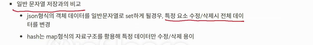 - json형식의 객체 데이터를 일반문자열로 set하게 될경우, 특정 요소 수정/삭제시 전체 데이터를 변경