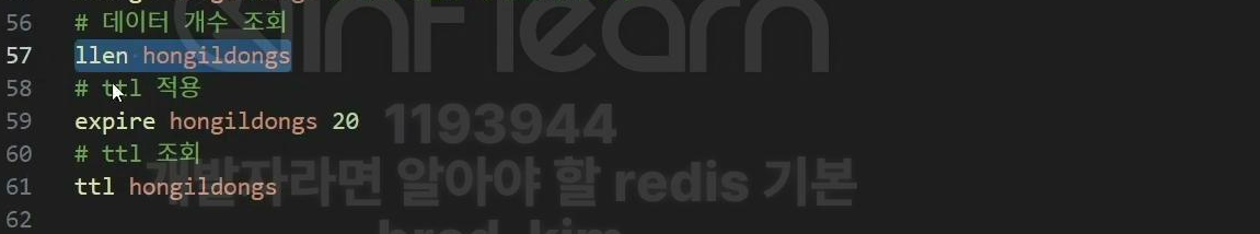 - “ttl key값” 명령어를 통해 남은 만료시간 확인 가능