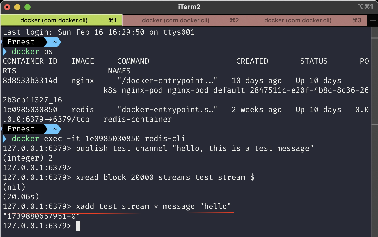 - XADD test_stream * message "Hello, this is a test message"