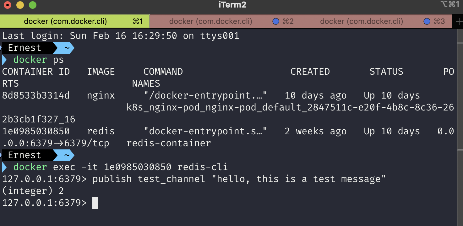 - 터미널2 : PUBLISH test_channel "Hello, this is a test message"
