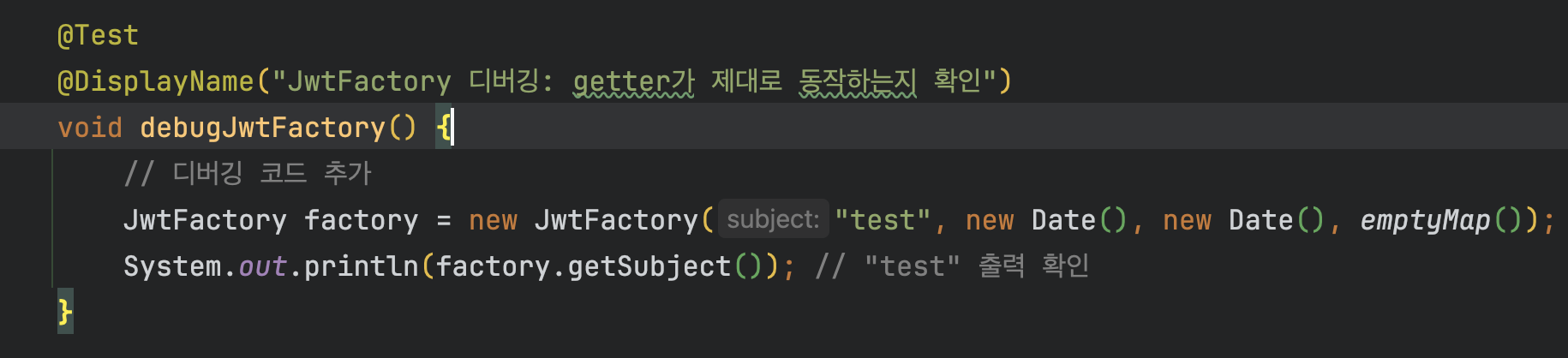 전에 만든 TokenProvider를 테스트 하기 위해 테스트 코드를 작성 중