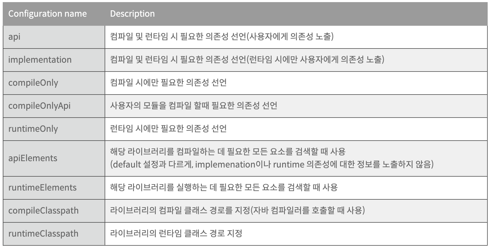 그리고 gradle 의존성 옵션을 찾아봄