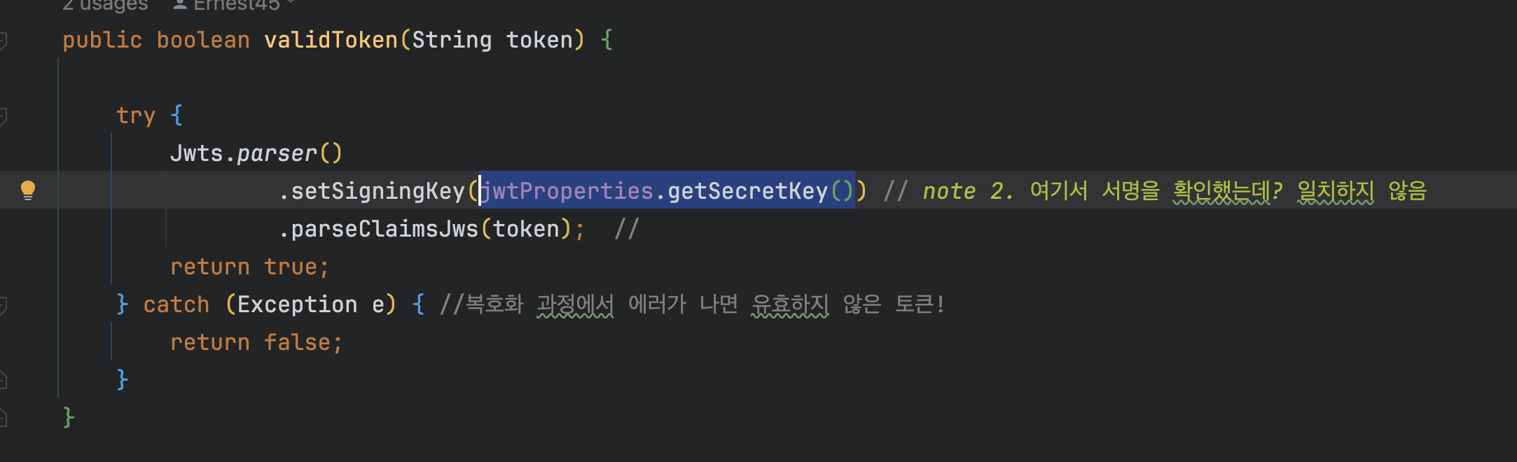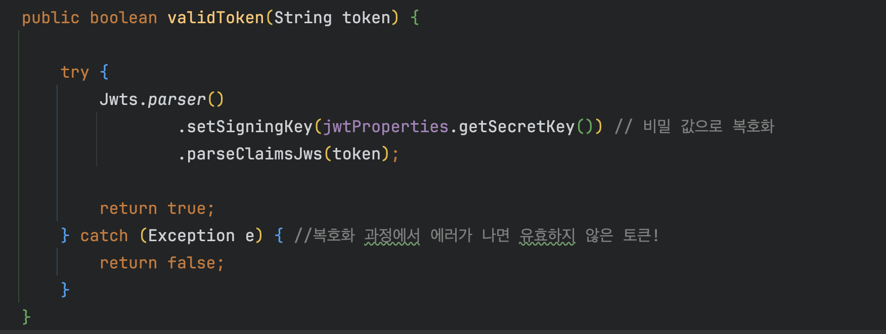jwt 토큰을 검증하는 과정에서