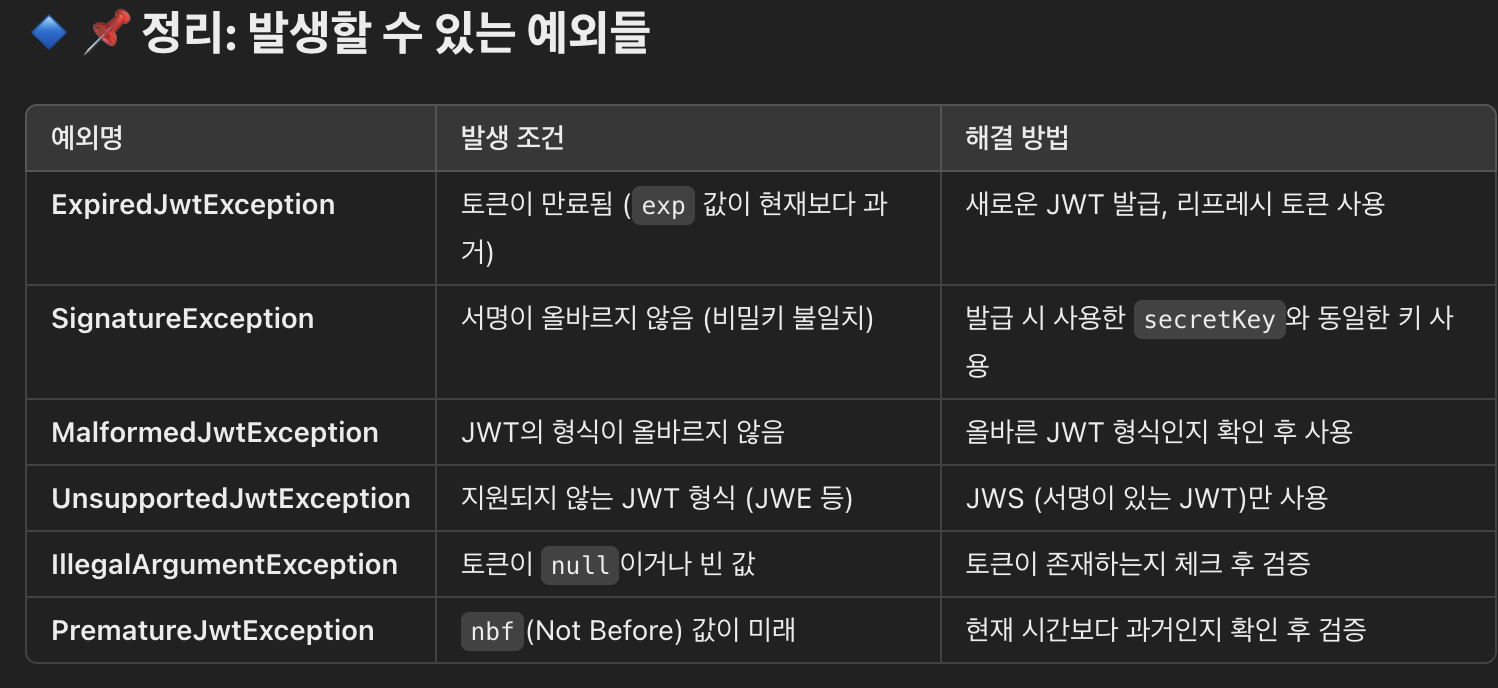 1. ExpiredJwtException → 토큰이 만료된 경우