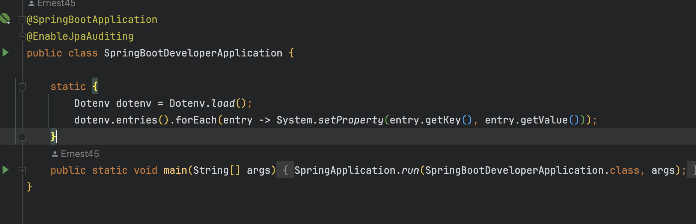 SpringApplication.run(SpringBootDeveloperApplication.class, args);