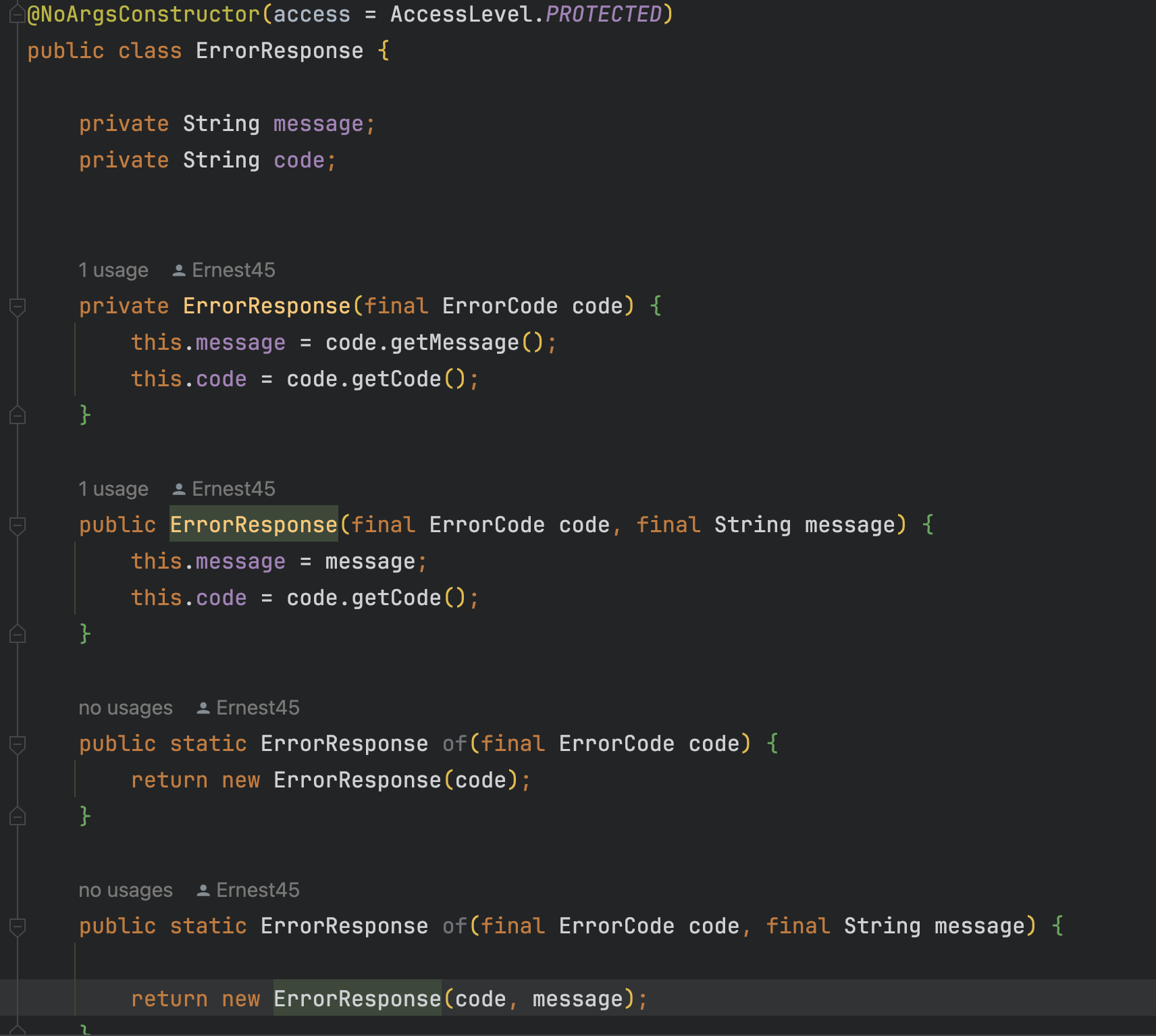 아까 만든 ErrorAttributes를 대체할용도를 가진 에레 메세지용 객체