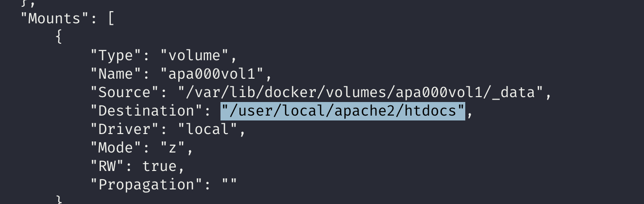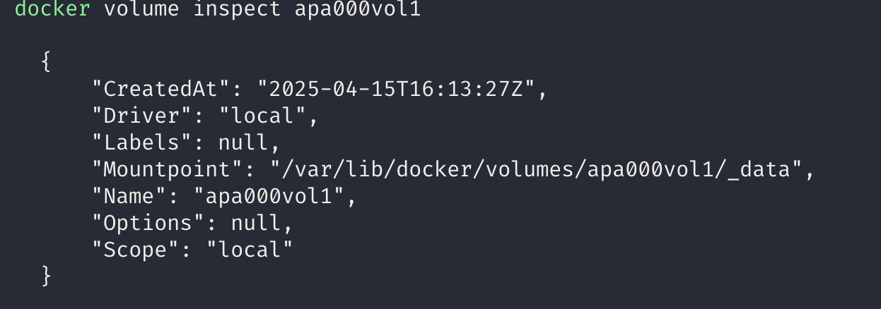 volume inspect 명령어로 볼륨의 상세 정보를 확인