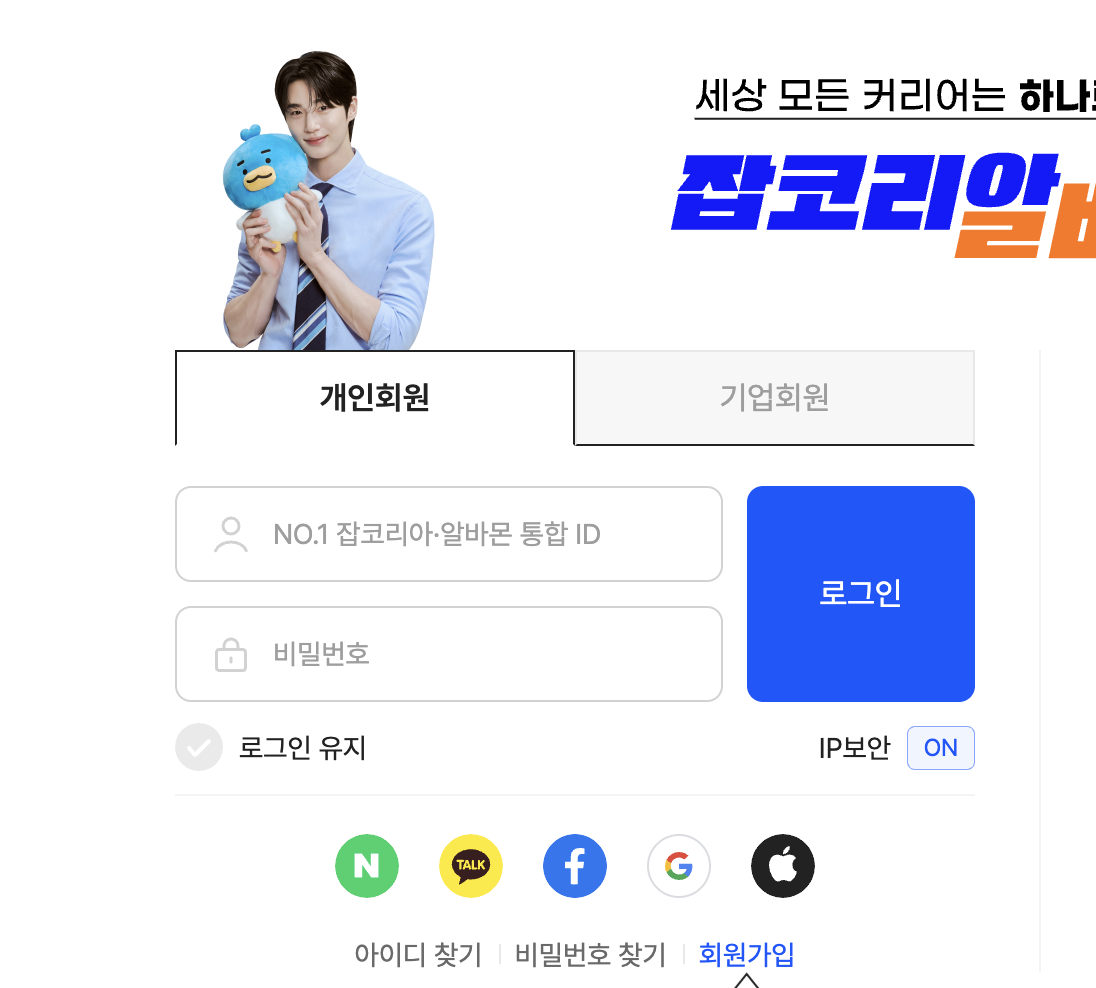 잡코리아의 경우 네이버로 OAuth2를 로그인할 경우가 제일 많을 것이다.