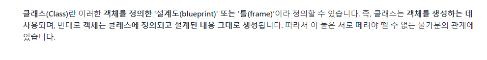 다시 말해 "클래스"라는 틀을 통해 생성된 것이 바로, "객체" 라고 할 수 있다.