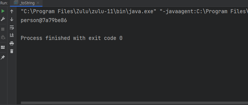 내가 따로 구현하지 않아서 Object 클래스의 기본 toString이 호출됐고, 그로 인해 그 객체의 클래스 이름과