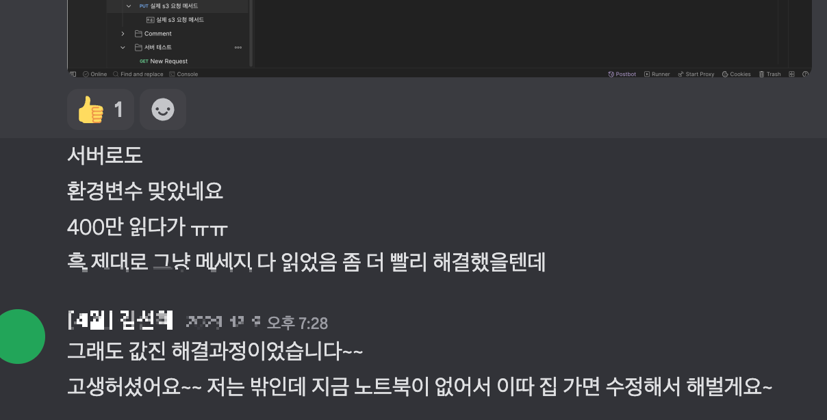번외 2 - 프론트 s3 담당자 분도 다른 에러..