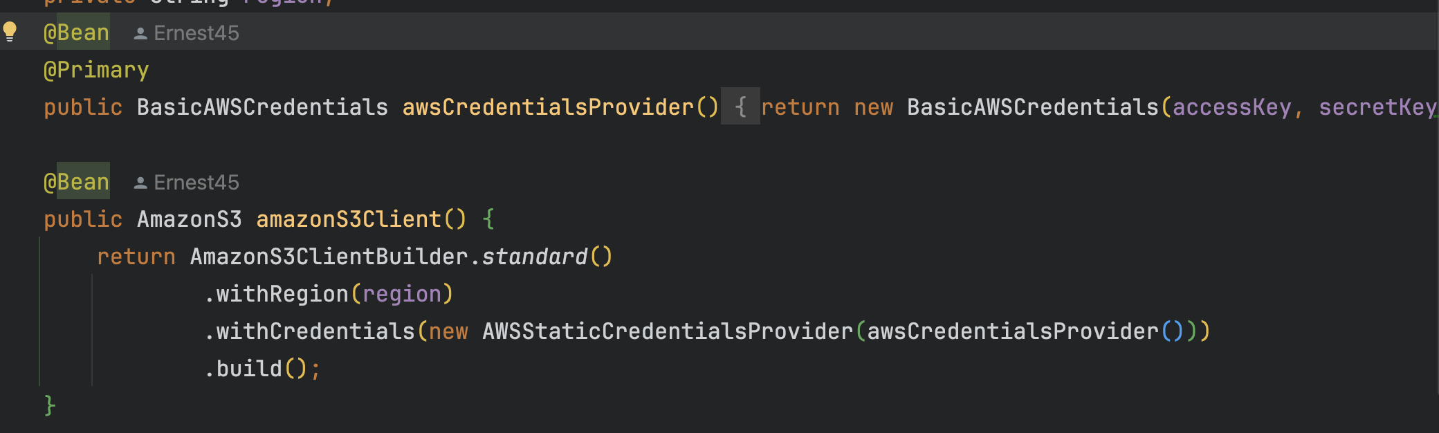AmazonS3 amazonS3 = amazonS3Config.amazonS3();
