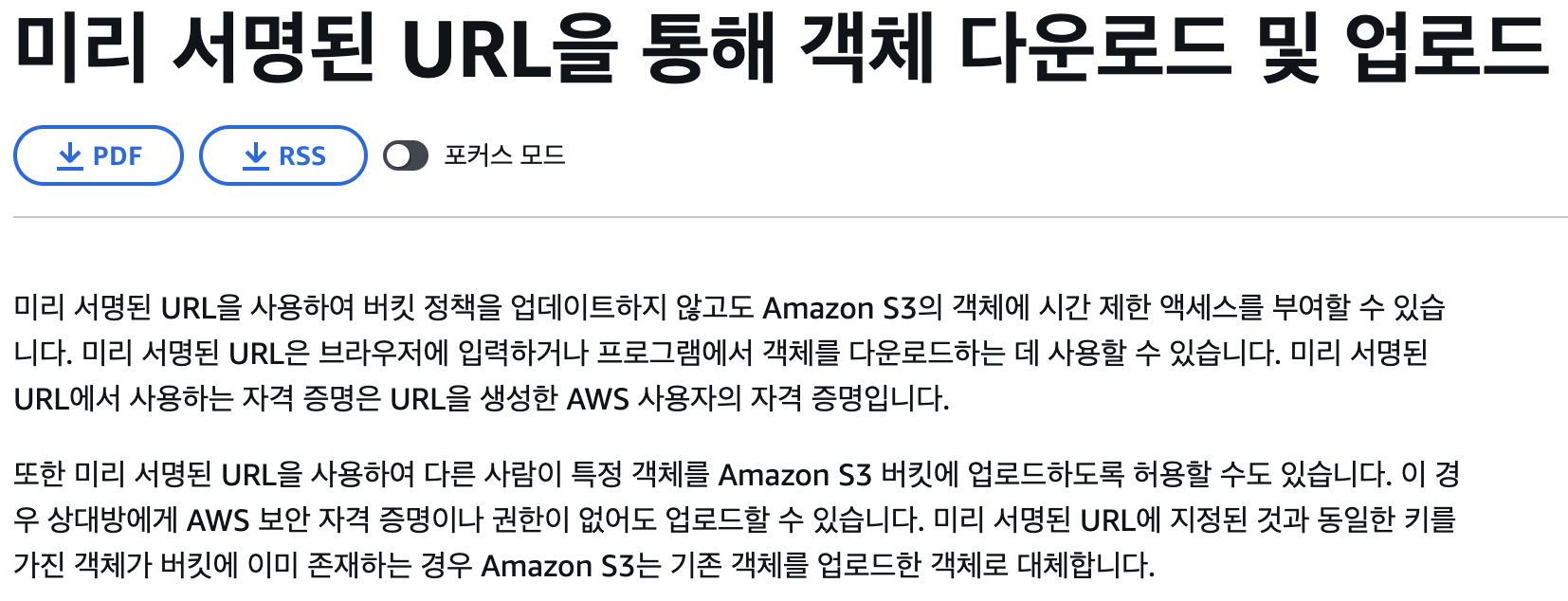 즉 서버를 거지치 않고 사용자가 우리 클라우드 저장소로 쓰고 있는 s3에 접근해 사진을 올릴 수 있다는 뜻이다.
