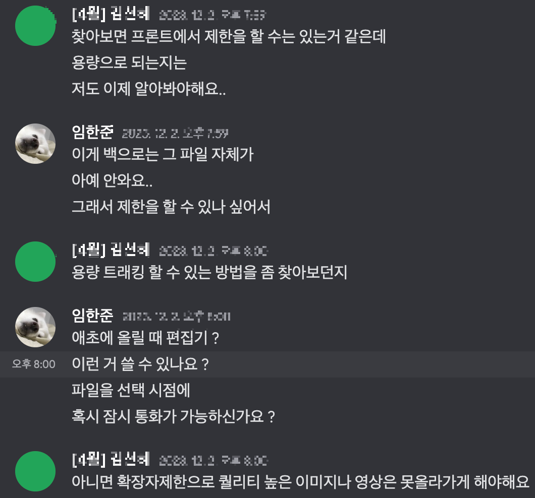 그래서 용량이나 사진의 갯수를 제한하는 건 프론트의 몫이였다.