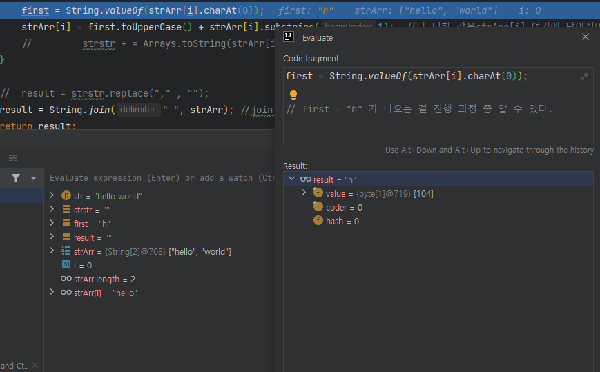이렇게 Evaluate가 뜨면서 내가 직접 코드를 작성할 수 있고, 출력 값을 바로 확인할 수 있어서