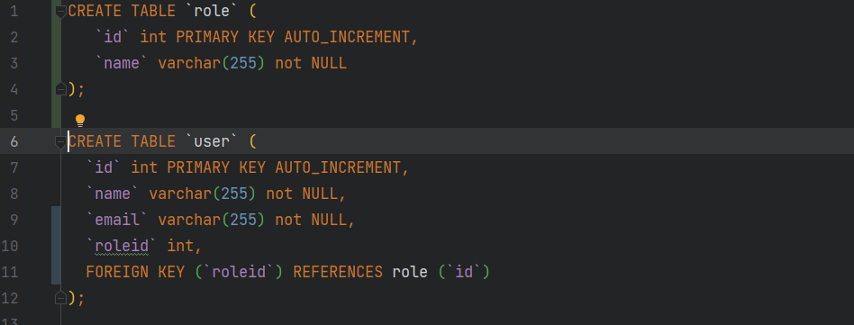 java에서는 내가 뒤에 추가해 줘도 알아서 연동되었지만, sql은 순서에 따라 내가 'role' 테이블을 추가해 주면